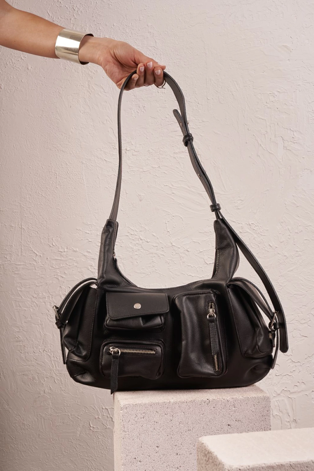 Cartera POCKETS fabricada en cuero. Estilo cargo. Con bolsillos externos.